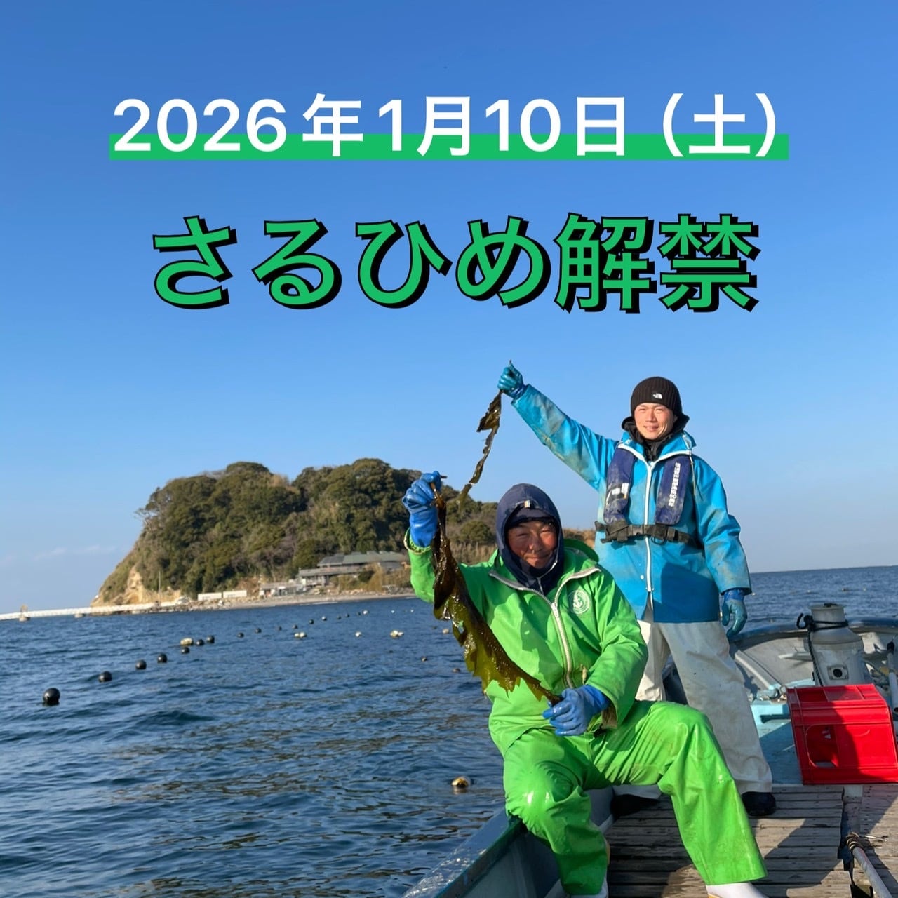 早どれ猿島わかめ「さるひめ」は本収穫(2月中旬~3月下旬)の前の若葉で収穫。2メートル以上に成長する猿島わかめを、わざわざ1メートル未満の状態で漁師さんが手積みしたのが「さるひめ」です。